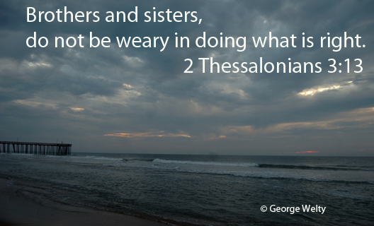 The middle of the week and a little slippery. Be careful stepping outside. Have a great day. Today's verse is 2 Thessalonians 3:13. The image was taken at Ocean City, MD.
